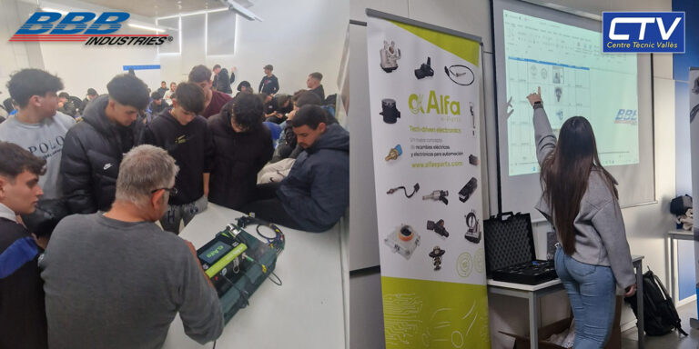 The CTV is an automotive vocational training school linked to the Girona Technical School group of centers, specialists in vocational training since 1990. According to Edgar Girón, teacher at CTV, “We appreciate the collaboration of leading companies in the automotive sector such as BBB Industries, the school-company relationship is a fundamental pillar in the professional development of students who opt for this professional branch. The companies can contribute their point of view and explain their needs for the good development of their activity and transmit them to the students for their good professional progression. We are very grateful for the visit of the professionals from Metalcaucho and Alfa e-Parts, which we are sure did not leave any student indifferent”.