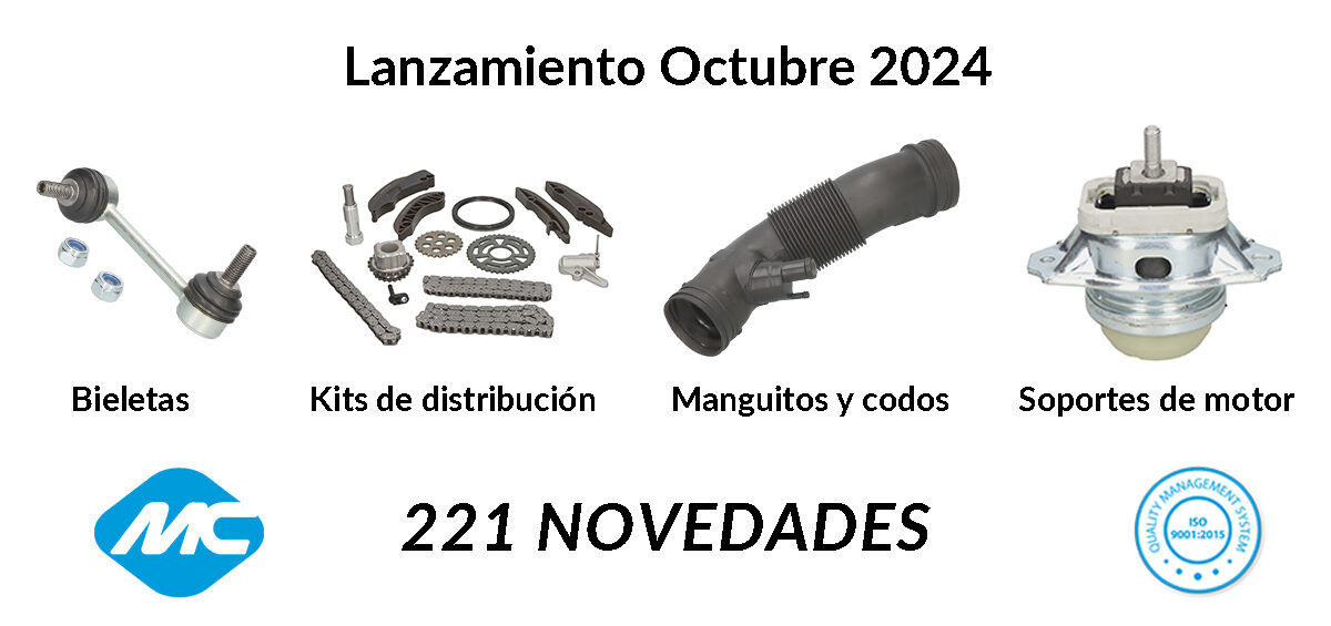 Entre las 221 piezas lanzadas destacan bieletas, manguitos, kits de distribución y soportes de motor. Además, se present…
